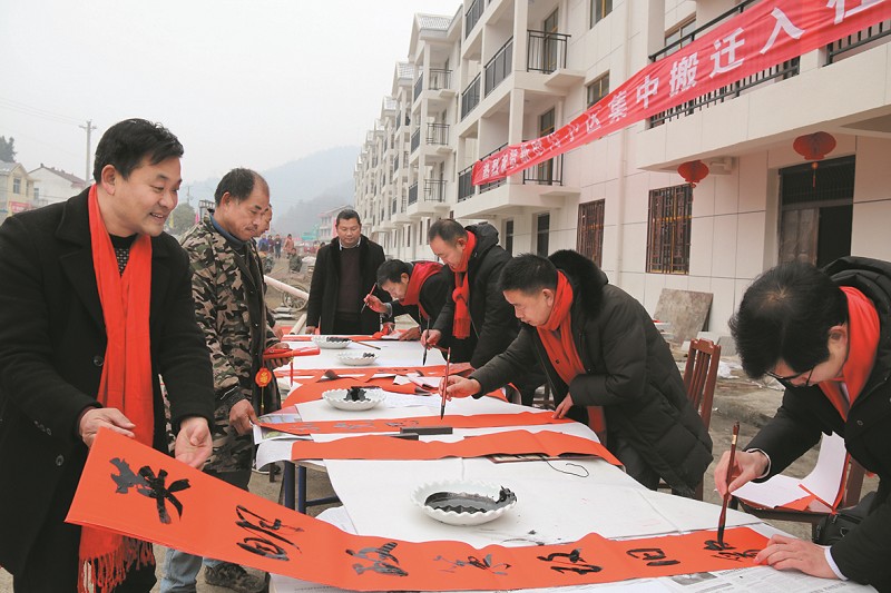 春节临近,房县纪委、县扶贫办、县文联联合开展 “为贫困户赠送廉政春联”活动,以 “脱贫攻坚 铭记党恩”为主题,充分发挥书法家协会、诗词楹联协会优势,组织17名会员深入移民搬迁小区为贫困户现场书写、赠送春联。目前,该县已为4个移民搬迁小区230余贫困户赠送廉政春联500副。据悉,该县文联计划在春节前组织会员撰写春联3000副,为全县贫因户赠送 “廉”礼。