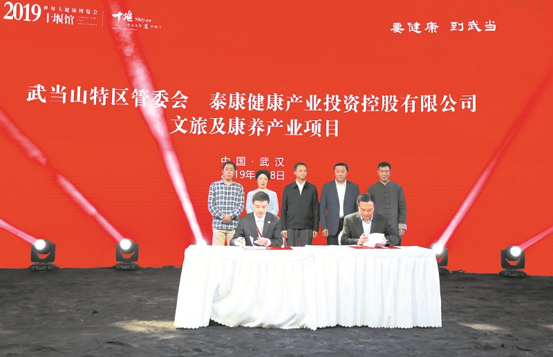 项目推介成果丰硕。4月8日下午,十堰馆举办了武当大健康产业论坛和武当山旅游康养项目签约仪式等活动,湖北武当文化研究会会长、湖北汽车工业学院教授杨立志,四川大学道教与宗教文化研究所所长、教授盖建民,北京大学医学部中医专家翁超明,湖北省道教协会副会长李玄辛,武当三丰派第十四代传人钟云龙,武当道医传人、主任医师尚儒彪等应邀出席武当大健康产业论坛,论道武当文化。武当山特区管委会与泰康集团、康辉集团、飞览天下 (北京)文化传媒公司等企业签订康养、遇真宫精品民宿、 “飞越武当”等项目,协议投资近20亿元。