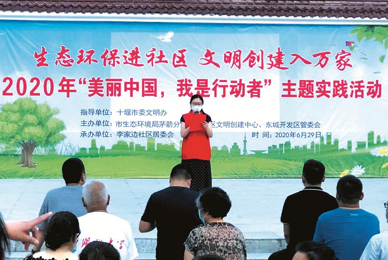 6月29日,由市委文明办指导,市生态环境局茅箭分局、茅箭区文明创建中心、茅箭区东城经济开发区管委会主办的“生态环保进社区 文明创建入万家”2020年“美丽中国,我是行动者”主题实践活动在东城经济开发区李家边社区举行。近年来,东城经济开发区大力倡导“十堰是我家,文明靠大家”的理念,引导辖区群众全面提升文明素养,为我市创文贡献力量。 通讯员王阳摄
