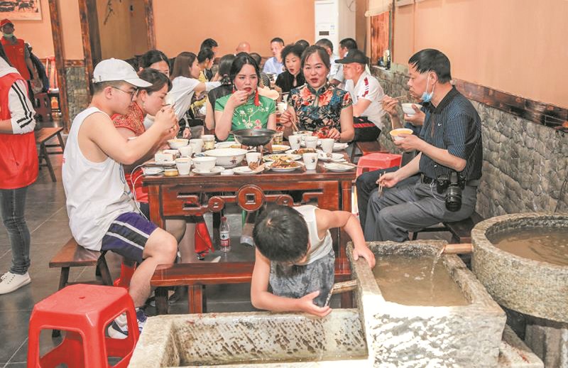 游客在景区农家乐享受竹溪美食