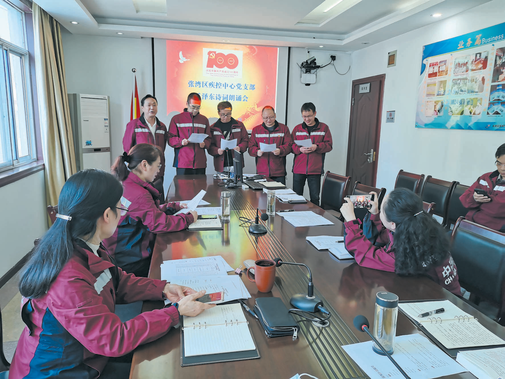 4月16日,张湾区疾控中心党支部举办毛泽东诗词朗诵会,该中心所有在岗职工积极参加,以科室为单位分组朗诵。大家纷纷表示,在慷慨激昂的朗诵中重温了红色经典,感受到了老一辈无产阶级革命家自强不息的革命精神和斗志。通讯员陈莉摄