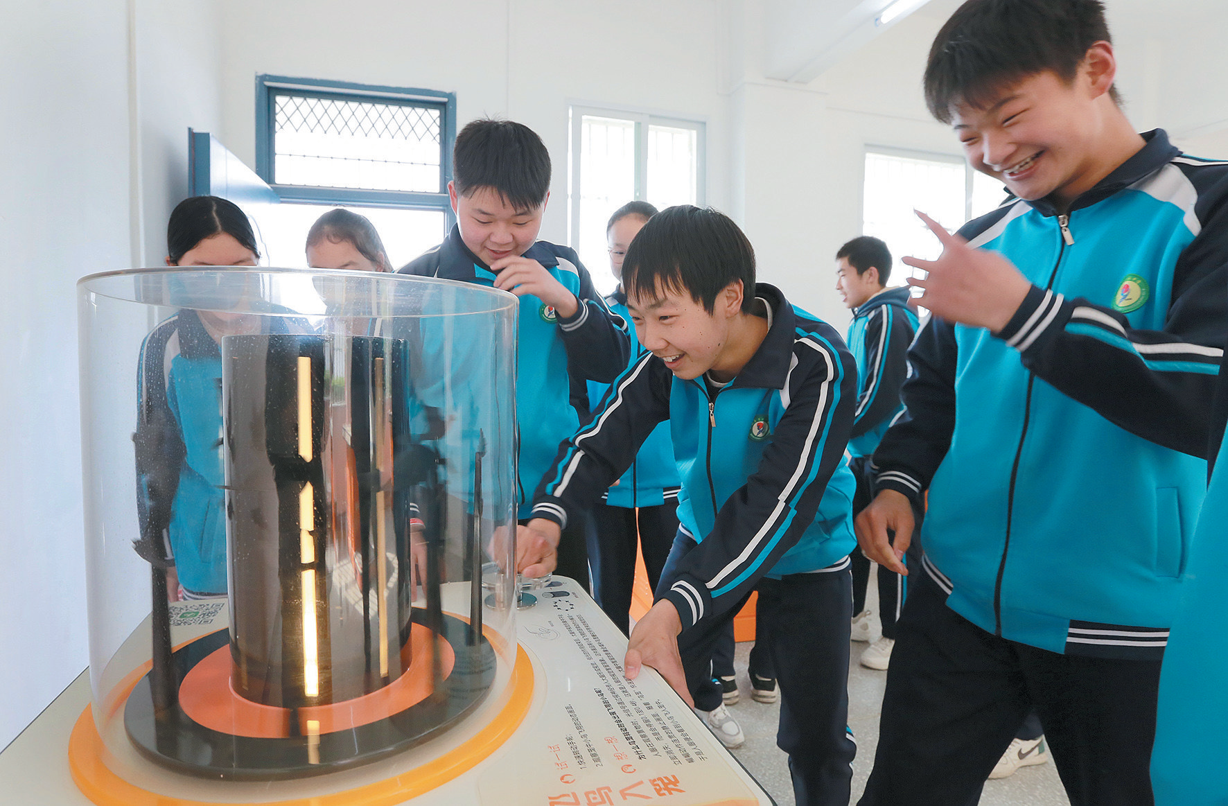 近日,竹山县溢水镇中学学生在该校科技馆感受科技奥秘。据了解,溢水镇中学科技馆是中国科技馆发展基金会“农村中学科技馆”援建公益项目,也是竹山县首个农村中学科技馆。馆内设置了声光体验、电磁探秘、运动旋律等6个学科展区及互动展品,为农村中学生“零距离”接触科技、探索科技奥秘搭建了平台。