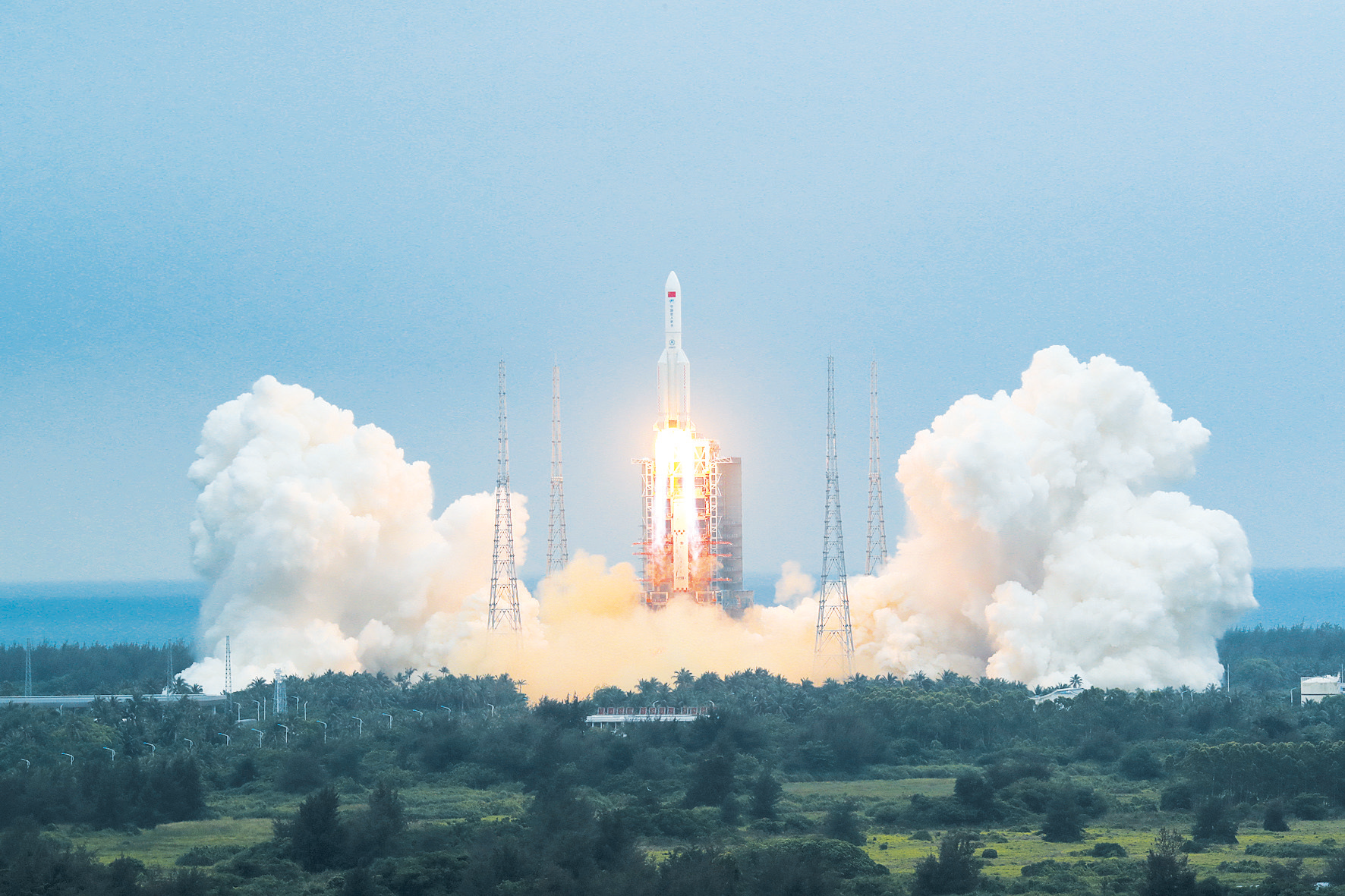 4月29日11时23分,中国空间站天和核心舱在我国文昌航天发射场发射升空,准确进入预定轨道,任务取得成功。这次发射任务成功,标志着中国空间站在轨组装建造全面展开,为后续关键技术验证和空间站组装建造顺利实施奠定了坚实基础。(新华社)