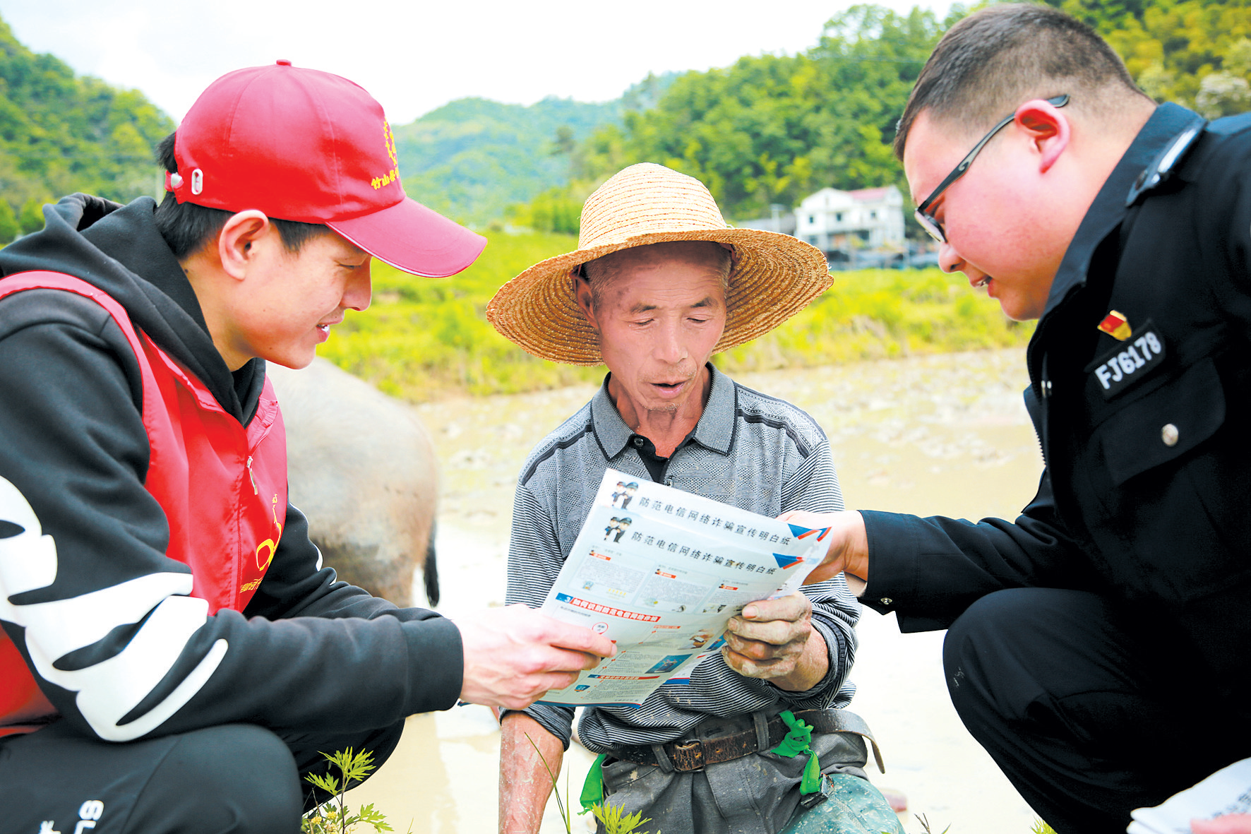 4月26日,竹山县文峰乡党员志愿者来到该乡轻土坪村田间地头和农户家中,宣讲基本医疗保险、防范电信网络诈骗、文明健康绿色环保等相关知识,进一步提高农民的法治意识。连日来,该乡组织党员志愿服务队,走进学校、企业和村组,开展“普法宣传进万家”活动,营造人人守法、懂法的社会氛围。