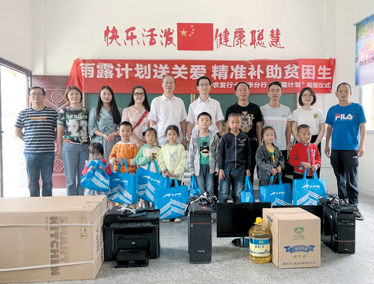 助力脱贫攻坚,发挥青年员工积极作用。为助力我市打赢脱贫攻坚战,农发行十堰市分行引导青年员工以实际行动践行初心。其中,通过“雨露计划”扶贫助学活动,连续七年为房县西蒿坪村小学贫困学生累计捐款16530元。此外,该行团委还组织全行青年员工通过开展网络扶贫“带货”活动,为企业推销农产品。同时,通过搭建平台、开通绿色通,组织青年员工持续为巩固脱贫成果、实施乡村振兴送服务。