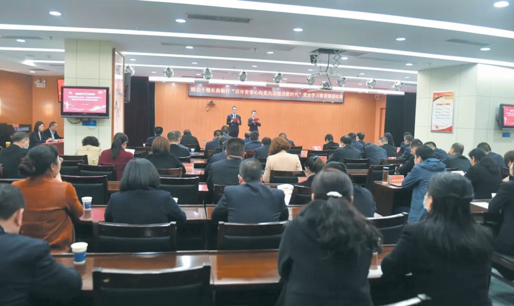 4月25日晚,一场别开生面的党史学习教育主题演讲比赛在湖北十堰农商银行11楼会议室举行,来自辖内的8家法人行的8支代表队通过“演讲+情景短剧+音乐快板”的新颖表现形式,为现场观众带来了一场关于党史学习教育的视听盛宴,以青年员工为主的各参赛代表队全面展示了湖北十堰农商银行的青春风采。