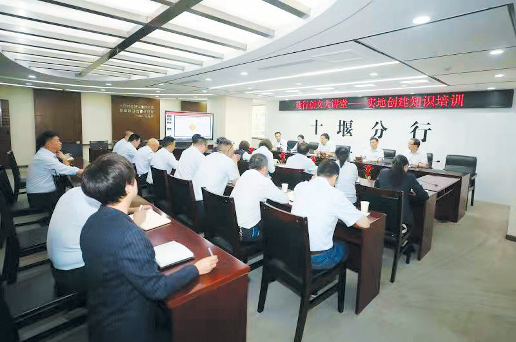 本报讯通讯 员 乐俊峰胡作富 报道:5月7日下午,建行十堰分行开展“创文大讲堂”活动,举办2022年实地创建知识培训会,学习城市管理网格化巡查、城市志愿服务网格化等内容。