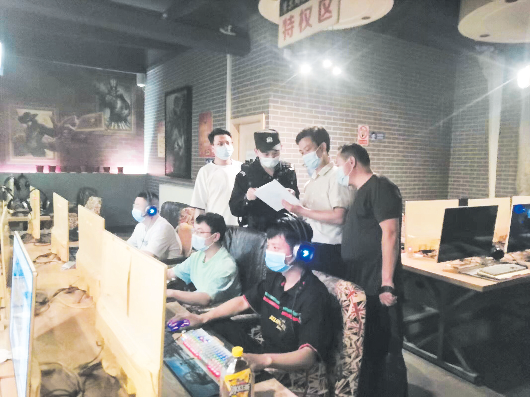 执法人员到网吧开展“扫黄打非”检查