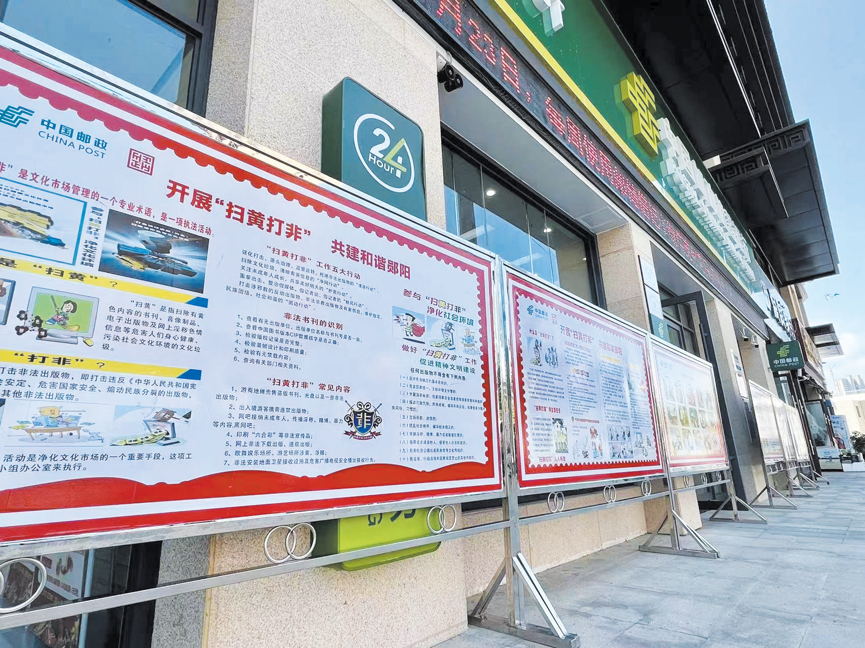 漫步郧阳大地,“扫黄打非”的宣传无处不在。在电梯口、户外显示屏、大型广告牌、中小学生读本……都能看到有关“扫黄打非”的公益宣传内容。