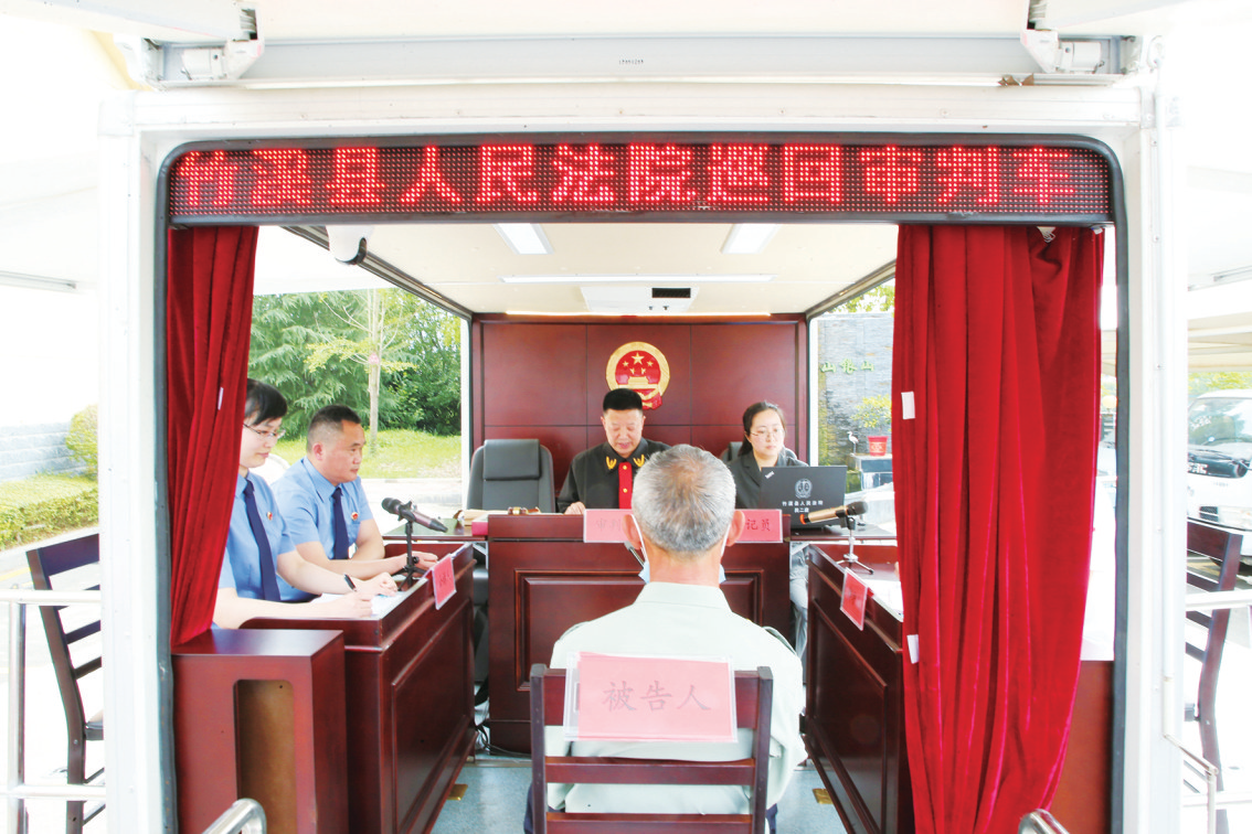 竹溪县人民法院巡回审判车现场公开审理案件。