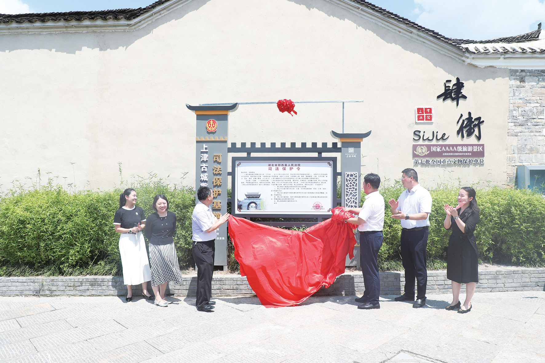 郧西县上津古城重点文物司法保护基地揭牌。