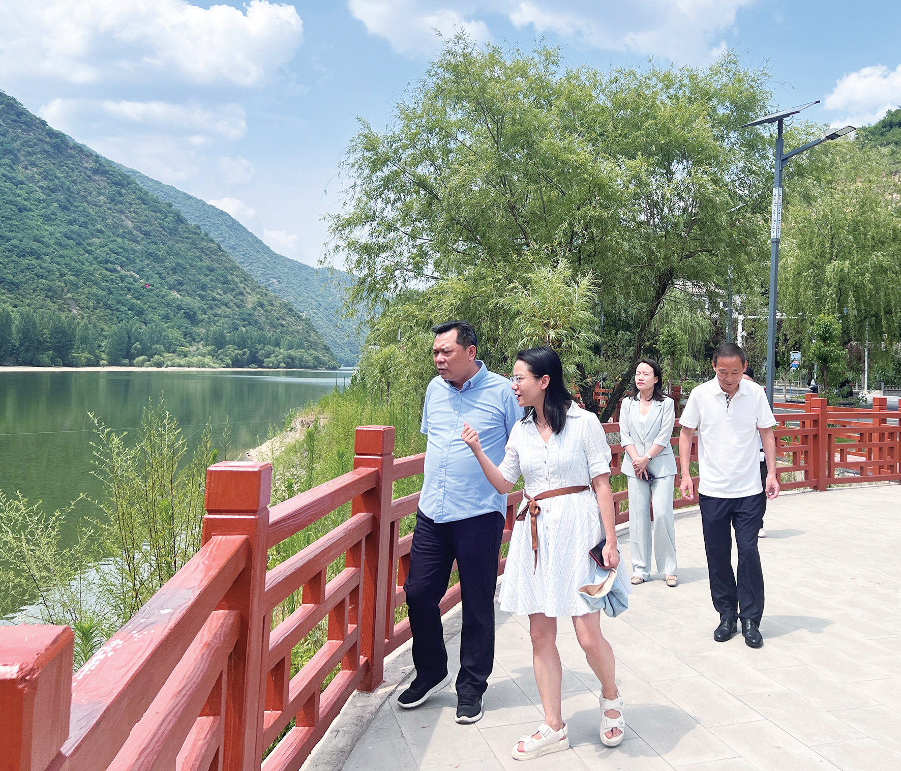市中级人民法院院长王宏(左一)在金钱河开展巡河、巡库工作。