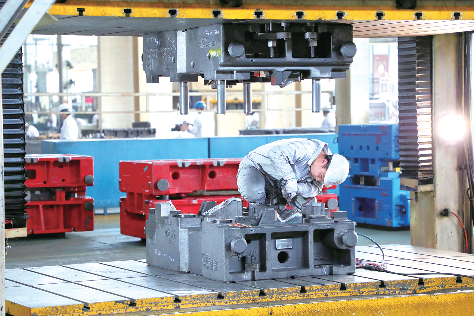 湖北十堰先锋模具股份有限公司工人在生产线上忙碌,全力以赴赶订单。记者全正摄